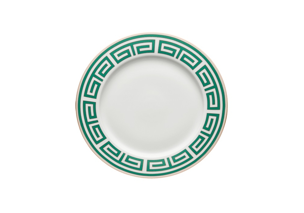 Piatto Labirinto Smeraldo diseñado por Ginori 1735 es un plato plano decorado.