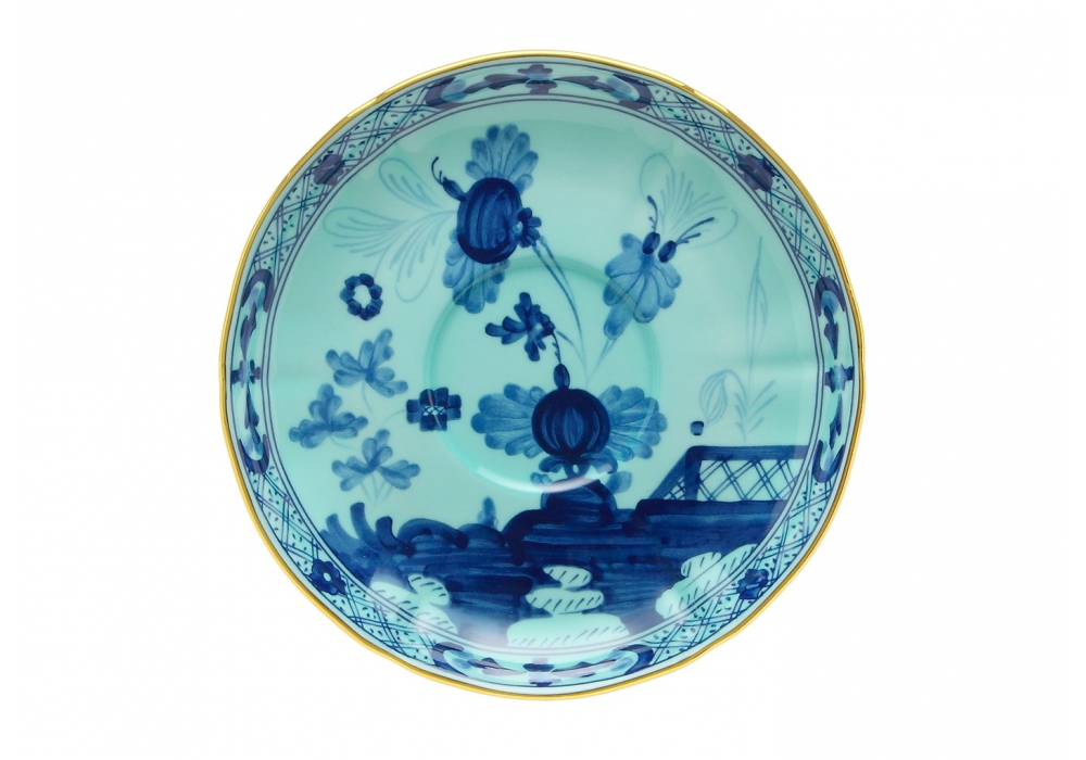 Piatto Caffè Oriente Italiano Iris diseñado por Ginori 1735 es un platillo decorado para taza de café.