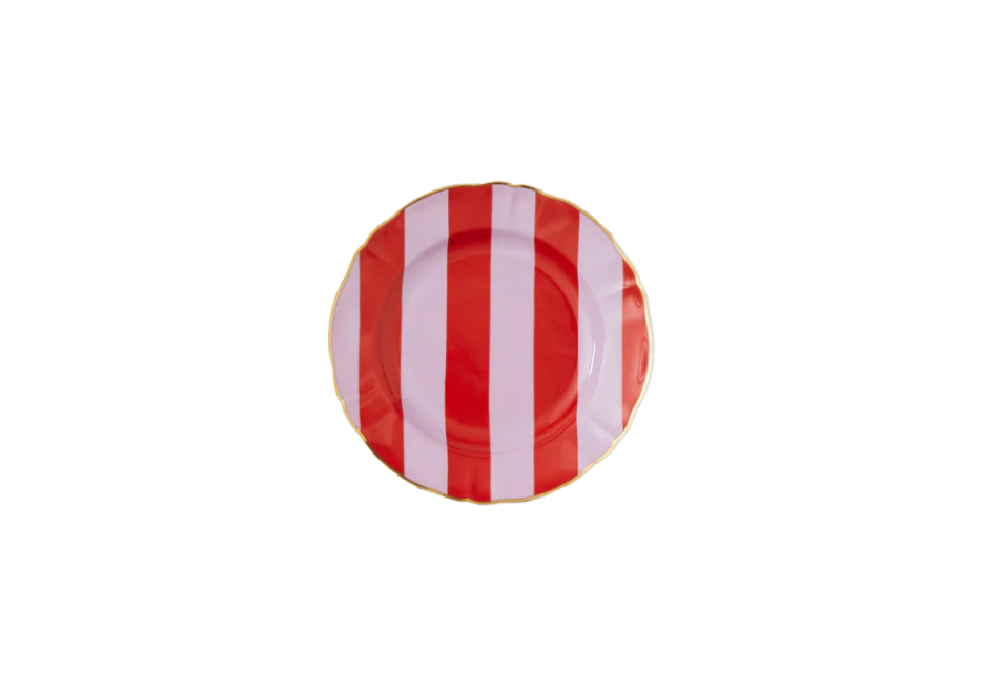 Righe firmado por design LaTigre para Bitossi Home es un plato de postre de porcelana con calcomanía y detalles dorados. Apto para lavavajillas y un máximo de 250 lavados. No apto para microondas.