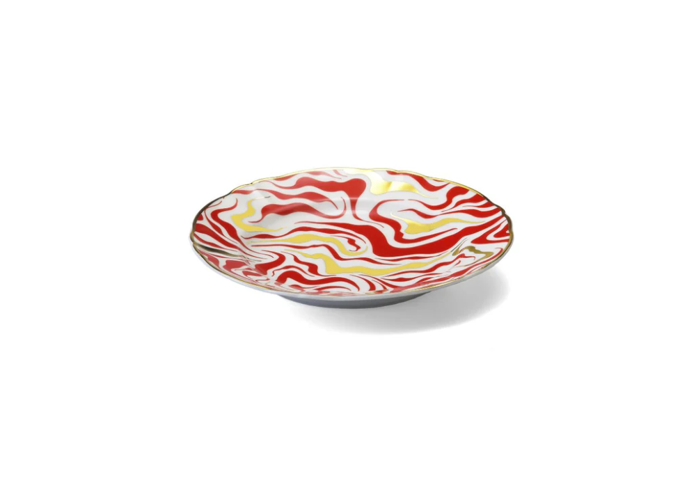 Tempesta firmado por design LaTigre para Bitossi Home es un plato de postre de porcelana con calcomanía y detalles dorados. Apto para lavavajillas y un máximo de 250 lavados. No apto para microondas.