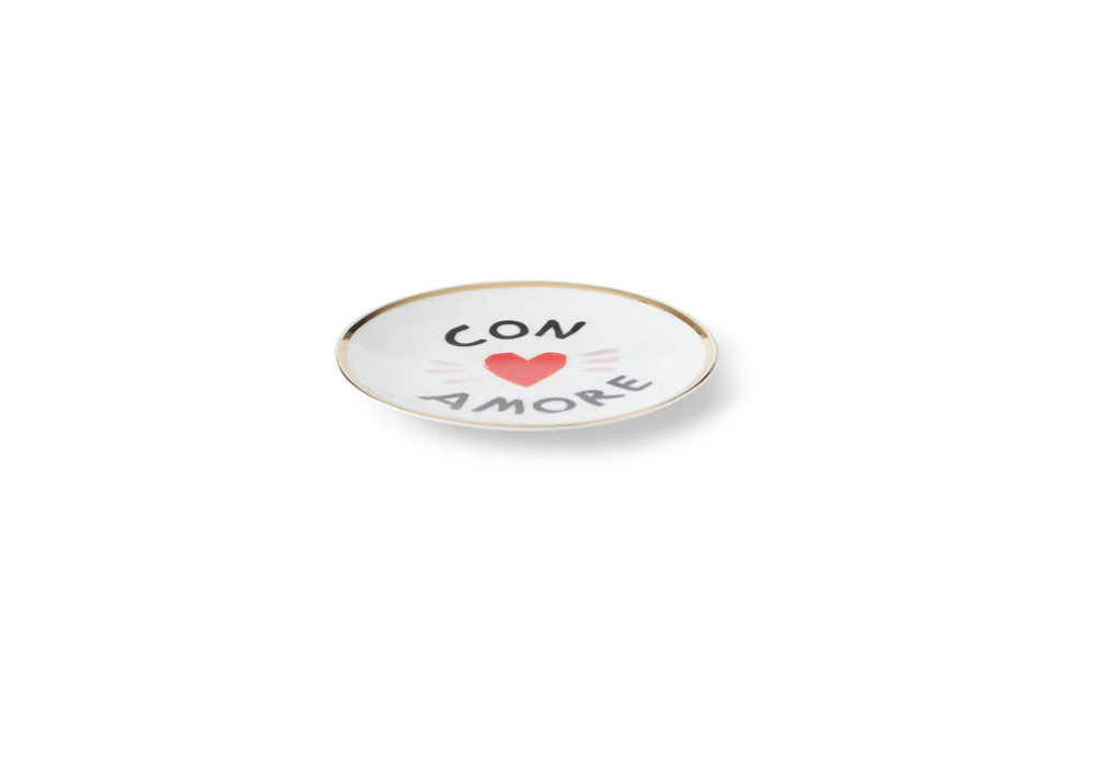 Con Amore diseñado por Bitossi Home es un plato pequeño con una calcomanía de color en su interior. Apto para lavavajillas. Máximo 250 lavados. No apto para microondasmo