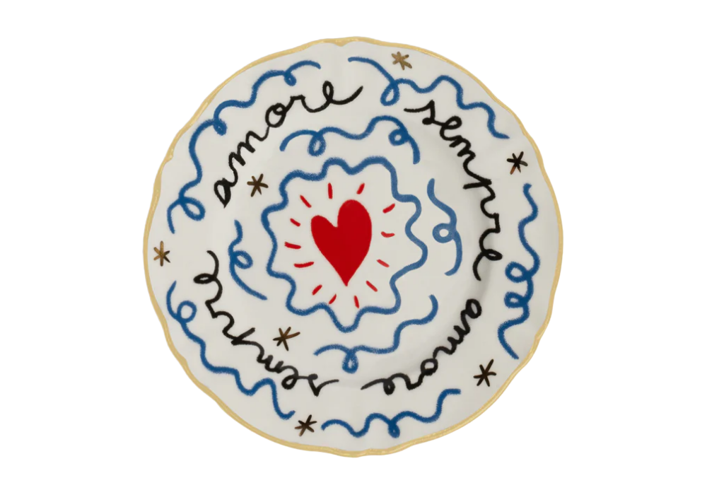 Cuore diseñado por Pangea para Bitossi Home es un plato pequeño con una calcomanía de color en su interior y detalles oro. Apto para lavavajillas. Máximo 250 lavados. No apto para microondas.