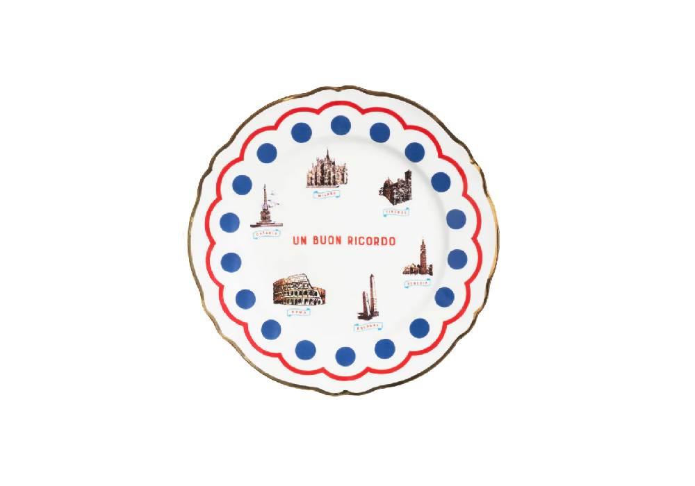 Monumenti firmado por design Sam Baron para Bitossi Home es un plato de porcelana con calcomanía y detalles dorados. Apto para lavavajillas y un máximo de 250 lavados. No apto para microondas.