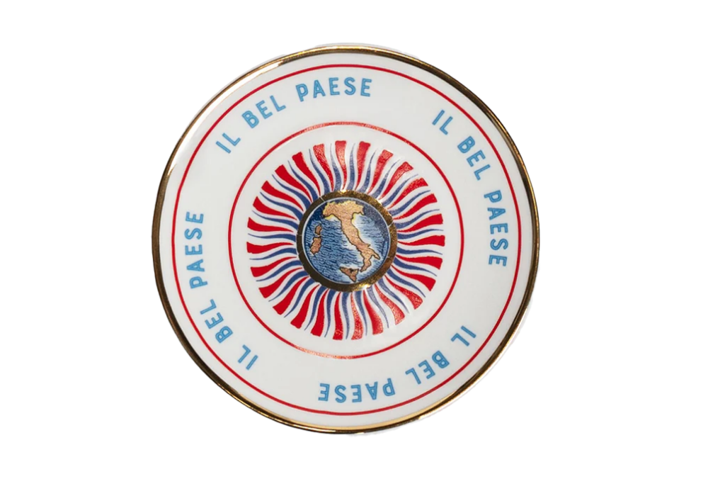 Italia firmado por design Sam Baron para Bitossi Home es un plato pequeño de porcelana con calcomanía y detalles dorados. Apto para lavavajillas y un máximo de 250 lavados. No apto para microondas.