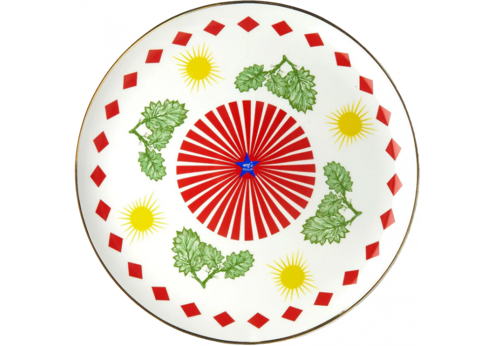 Foglie firmado por design Sam Baron para Bitossi Home es un plato de servir de porcelana con calcomanía y detalles dorados. Apto para lavavajillas y un máximo de 250 lavados. No apto para microondas.