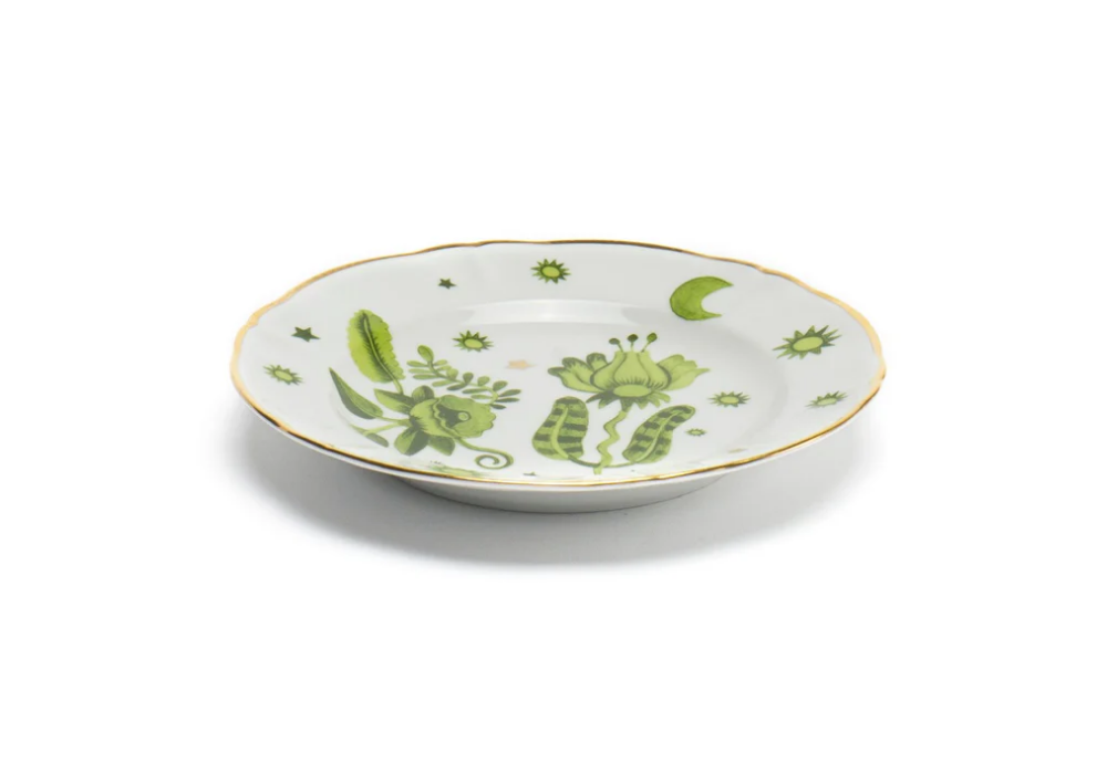 Eden firmado por design Aitch.Ro para Bitossi Home es un plato de fruta de porcelana con calcomanía y detalles dorados. Apto para lavavajillas y un máximo de 250 lavados. No apto para microondas.