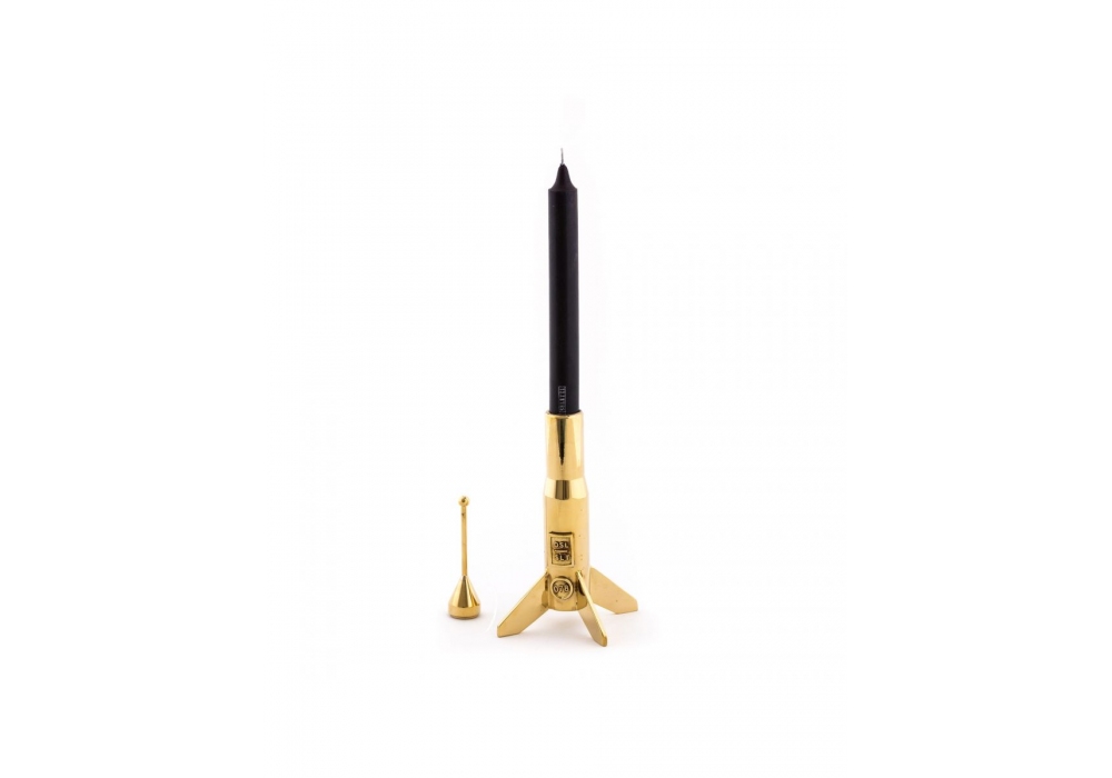 Cosmic Diner-Hard Rocket 1 diseñado y producido por Seletti es un candelabro con forma de torpedo íntegramente fabricado en latón acabado en bronce.