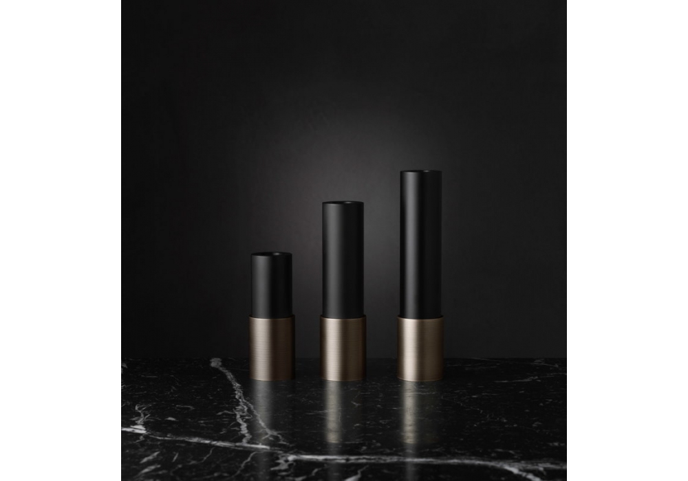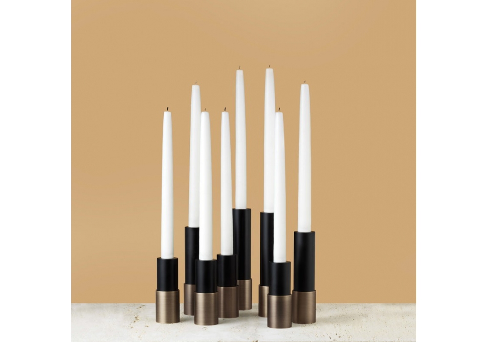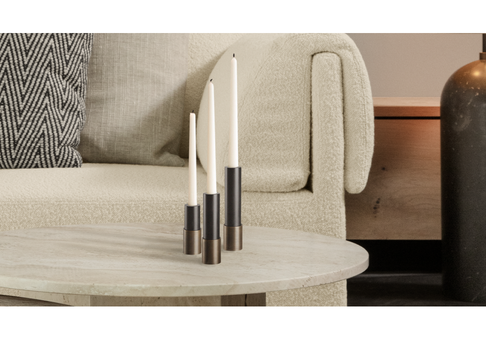 Space diseñado por Space Copenhagen para gubi es un candelabro de acero y latón disponible en tres tamaños.