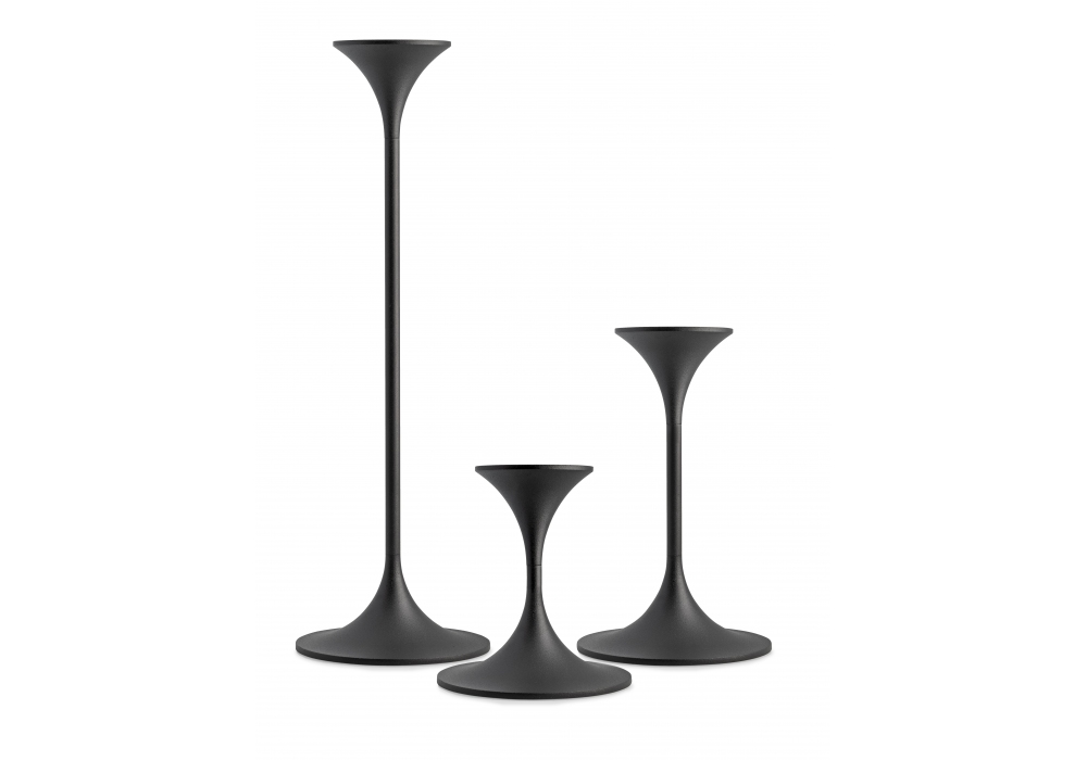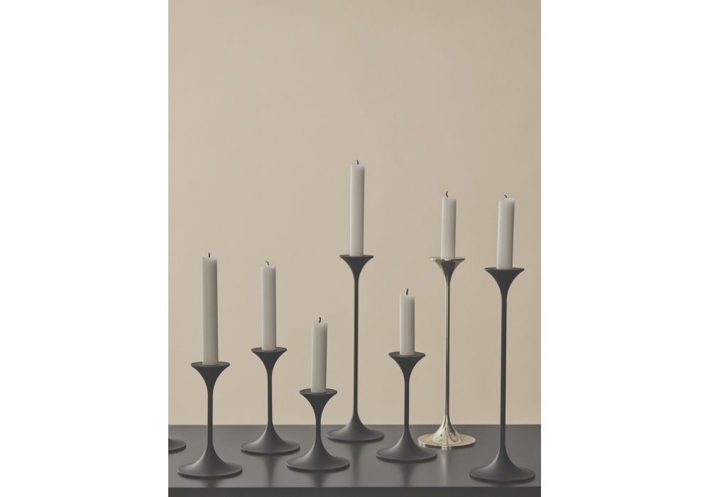 Jazz diseñado por Max Brüel para Karakter es un soporte de vela realizado en acero con recubrimiento en polvo negro. Jazz contiene una tapa, una base y tres varillas intercambiables de diferentes dimensiones.