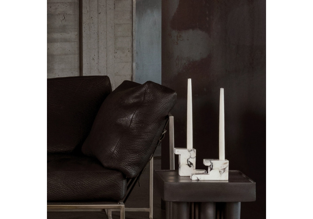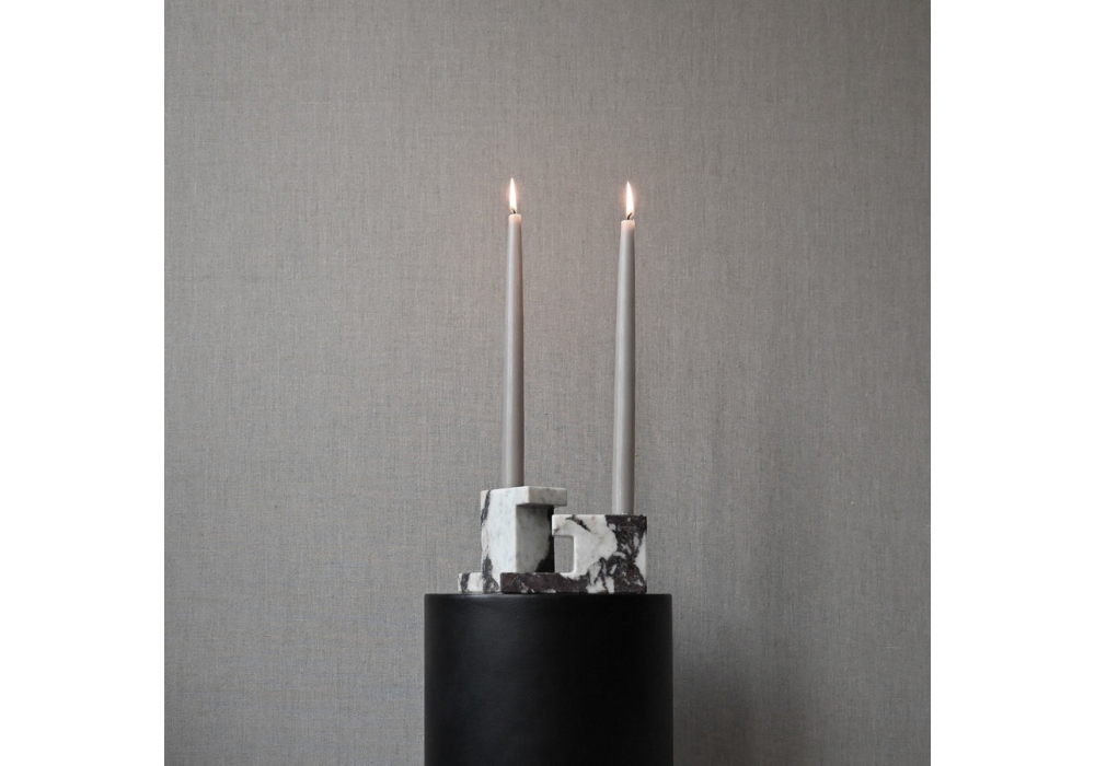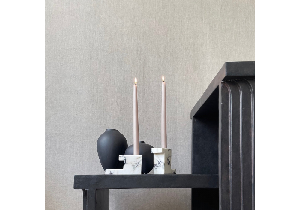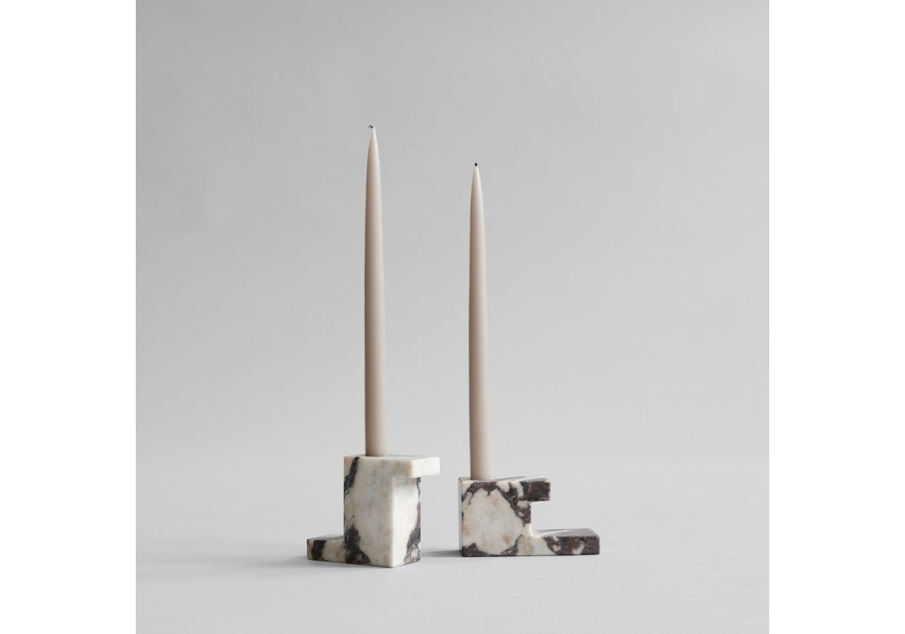 Brick diseñado por Kristian Sofus Hansen & Tommy Hyldahl para 101 Copenhagen es un portavelas realizado en mármol Calacatta. Disponible en diferentes modelos.