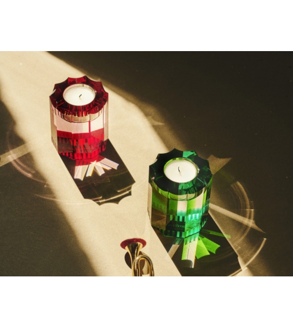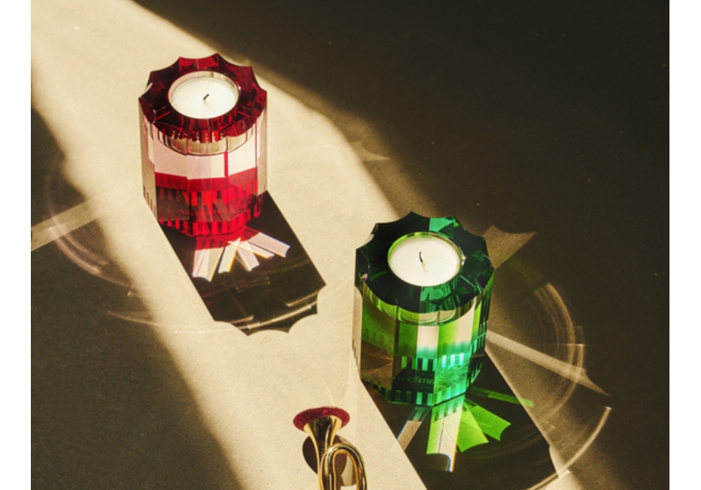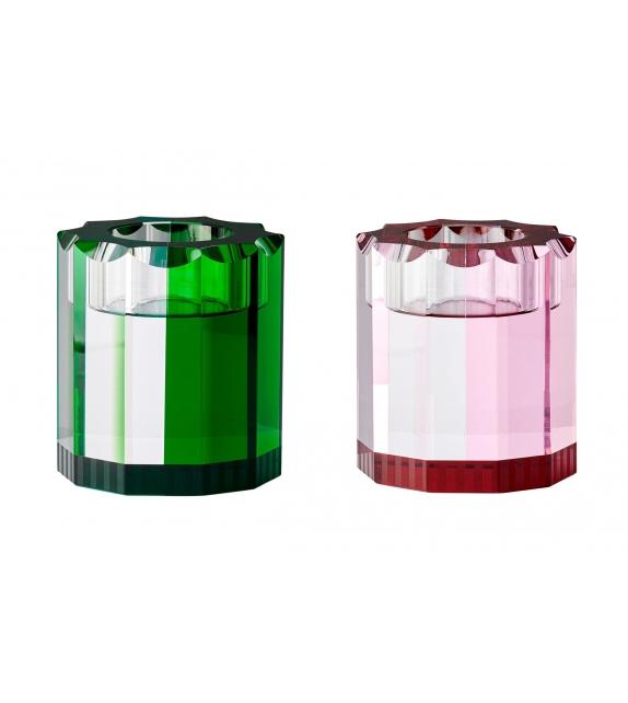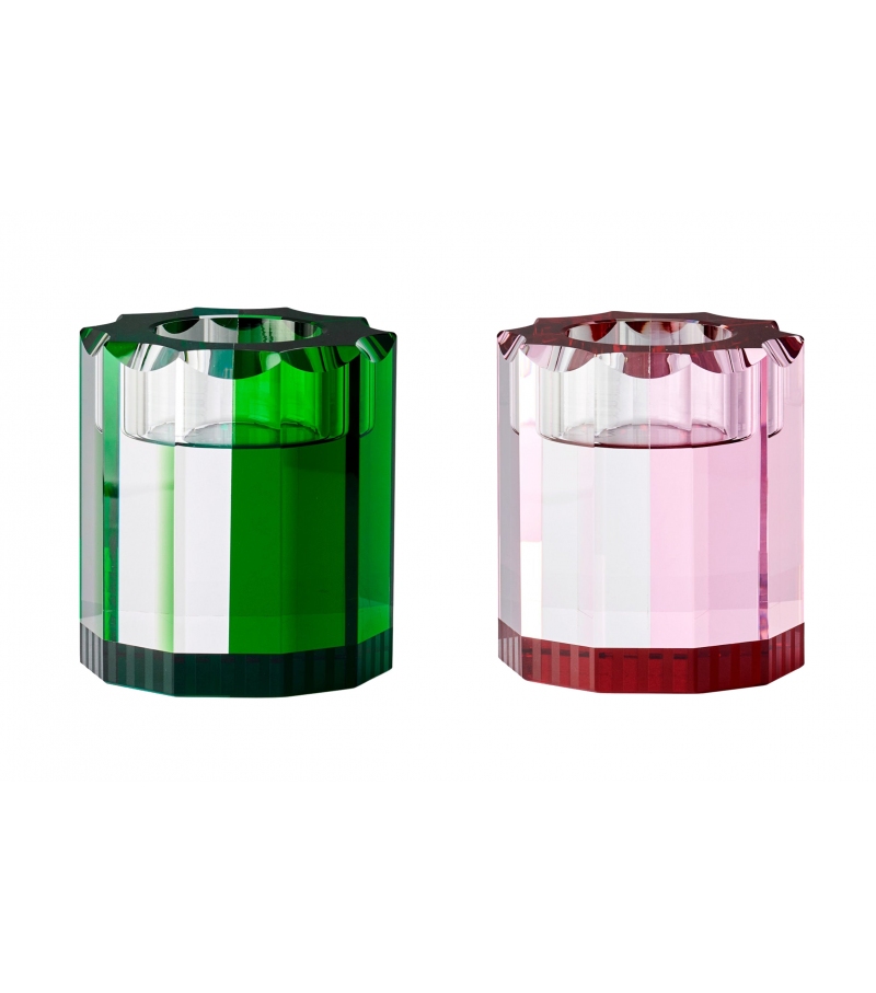 Lincoln Christmas producido y firmado por Reflections Copenhagen es un portavelas en cristal redondeado tallado y acabado a mano pintado en rojo/rosa o azul/verde.
