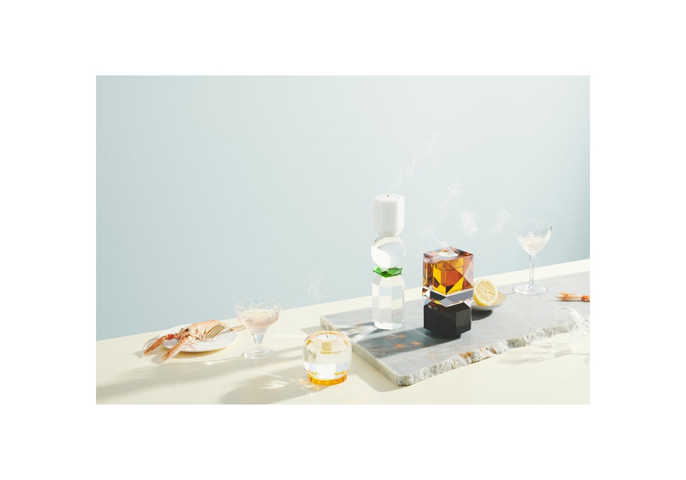 Dakota producido y diseñado por Reflections Copenhagen es un portavelas de cristal estructurado por varios elementos geométricos tallados y acabados a mano disponibles en diferentes acabados.