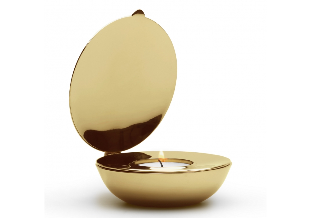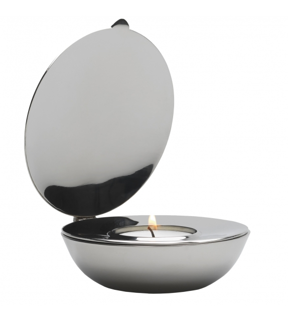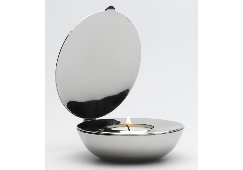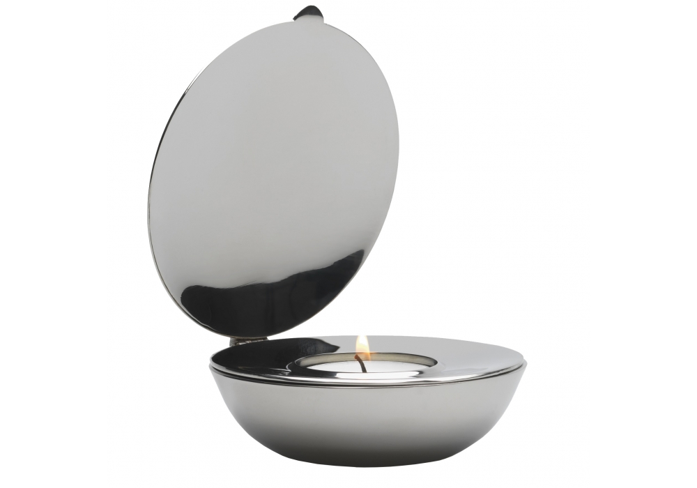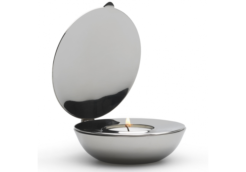 Shell by Design House Stockholm is a candleholder. Light a tealight candle in the recessed base, and see the glow of the flame mirrored in the silver-plated hinged lid. With the Shell, Magnus Löfgren has devised a design that transcends fashions and market trends. The Shell is made of highly-polished, nickelplated metal.