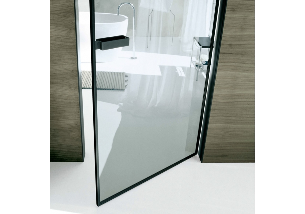 Vela diseñada por Giuseppe Bavuso para Rimadesio es un proyecto de excepcionales características innovadoras: la puerta está dotada de apertura bidireccional, es decir que puede abrirse en ambos sentidos. Ello porque se coloca en el centro de la jamba,y las bisagras se encuentran ubicadas en los lados inferior y superior de la puerta. La jamba está empotrada a la pared, por lo que queda escondida.