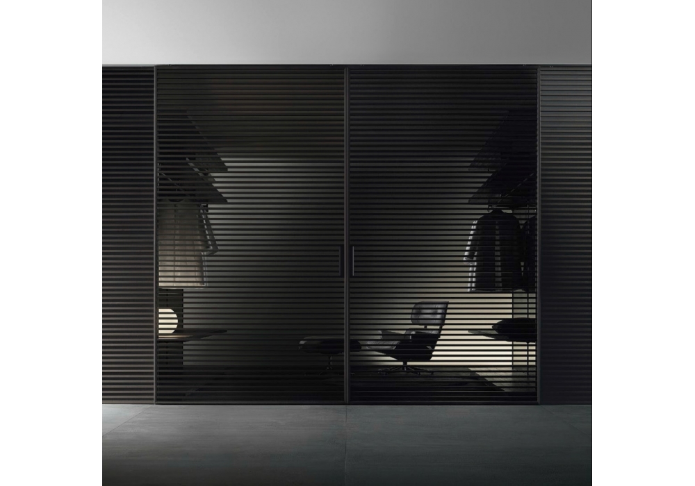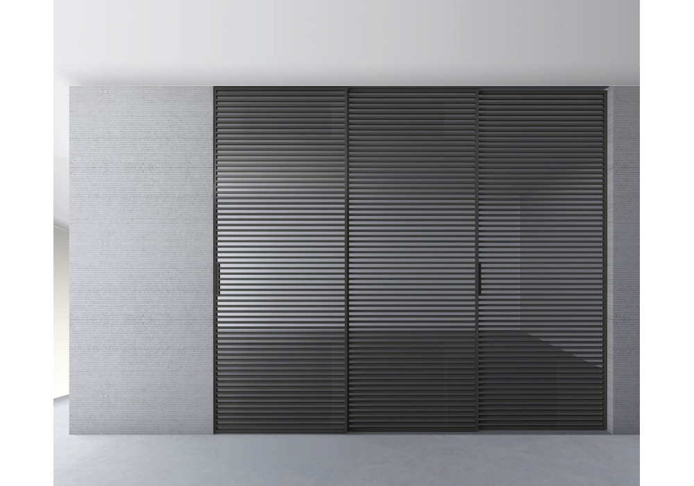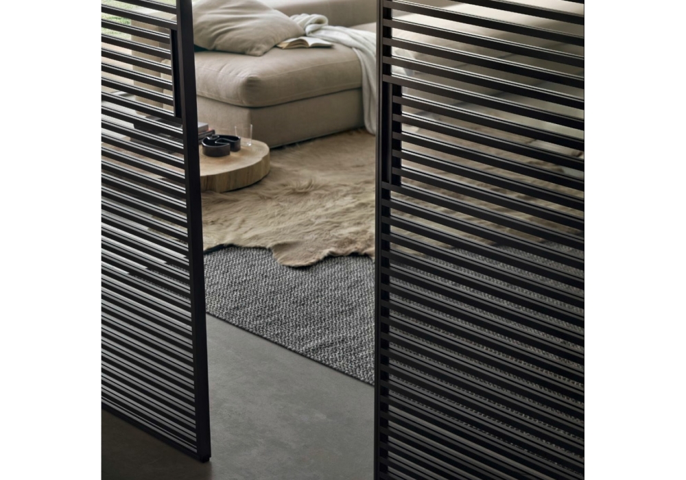 Stripe diseñada por Giuseppe Bavuso para Rimadesion es el sistema de paneles correderos caracterizado por el diseño de traversales en aluminio, presentes en ambos lados del panel, lo que convierte las composiciones ser perfectamente bifaciales. De la zona de noche a la zona de día, Stripe es un sistema desarrollado para cada área de la casa, así como para las áreas profesionales y públicos.