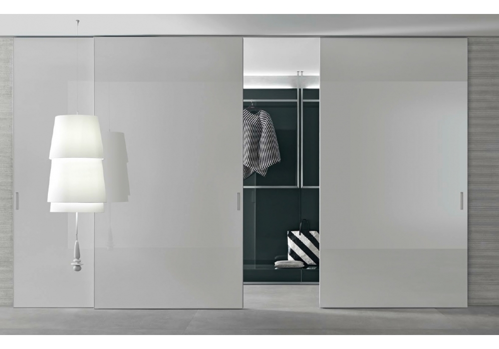 Graphis Light diseñada por Giuseppe Bavuso para Rimadesion es el sistema específicamente dedicado a la zona de noche, diseñado para cerrar vestidores y espacios. Una propuesta complementaria a los paneles correderos Graphis y Graphis plus, que en la versión light se caracteriza por el panel en cristal de frente único, que combina la ligereza y la pureza del design.