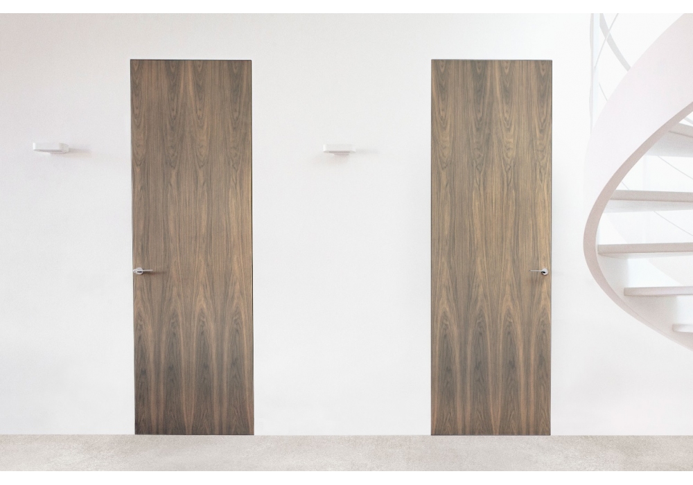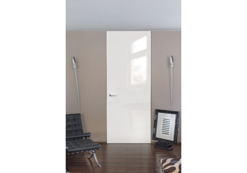 V0 diseñada por Viva es una puerta de interior a ras de la pared, tirante o empujador, batiente completa con marco y puerta de aluminio. Lacado mate, brillante o madera. Disponible en diferentes acabados.