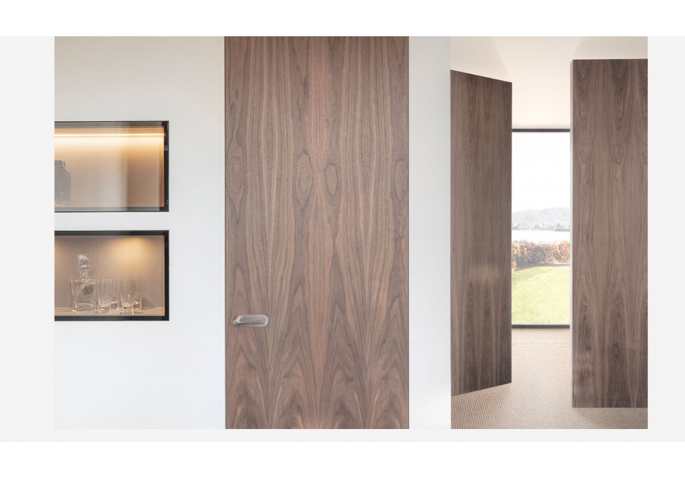 V Pivot diseñada por Viva es una puerta pivotante, lacada brillo, mate o madera. Disponible en diferentes acabados y versiones.