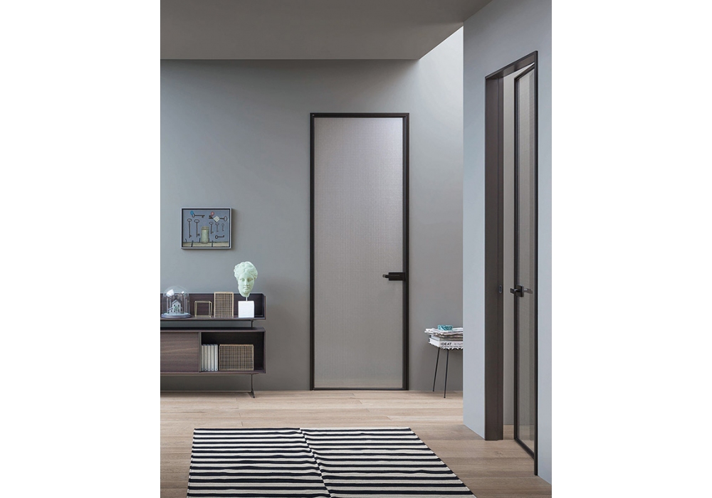 L7 diseñada por Piero Lissoni para Lualdi es una puerta de design con puerta en madera o cristal y jamba en aluminio. Disponible en diferentes acabados.