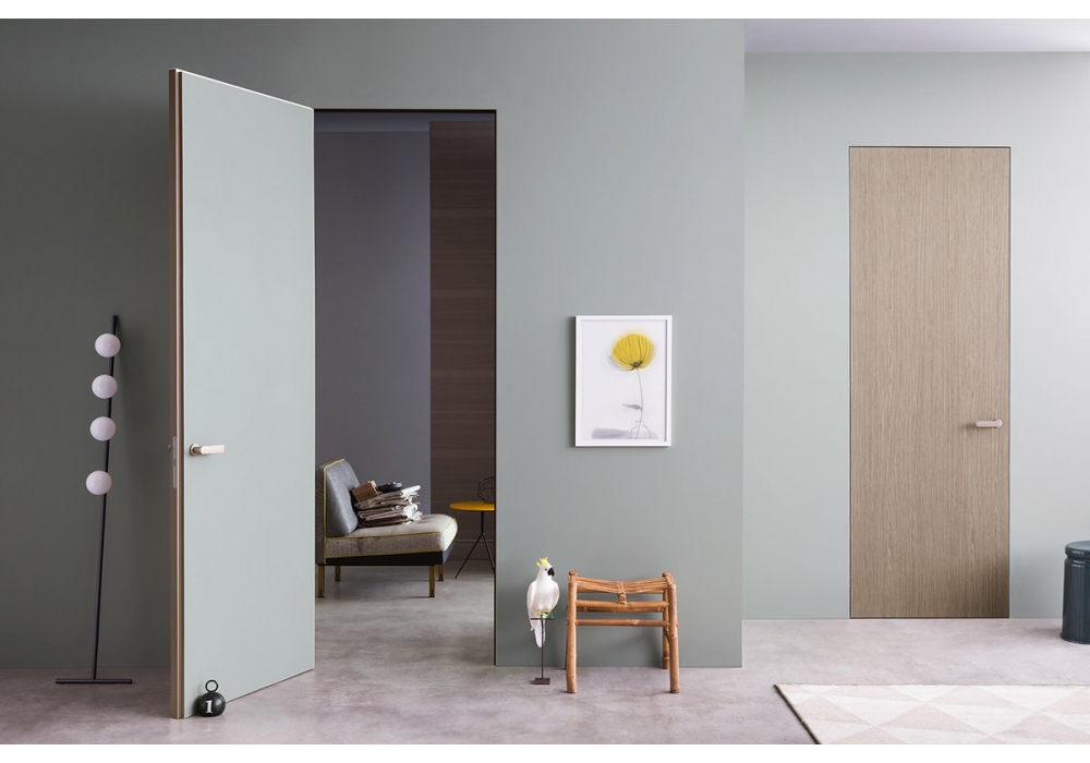 Rasoline 55 producida por Lualdi es una puerta batiente a ras de pared para interiores en panel de nido de abeja con marco de aluminio. Para las superficies de los dos lados es posible solicitar acabados especiales fuera de catálogo, para una personalización total. Disponible en diferentes acabados.