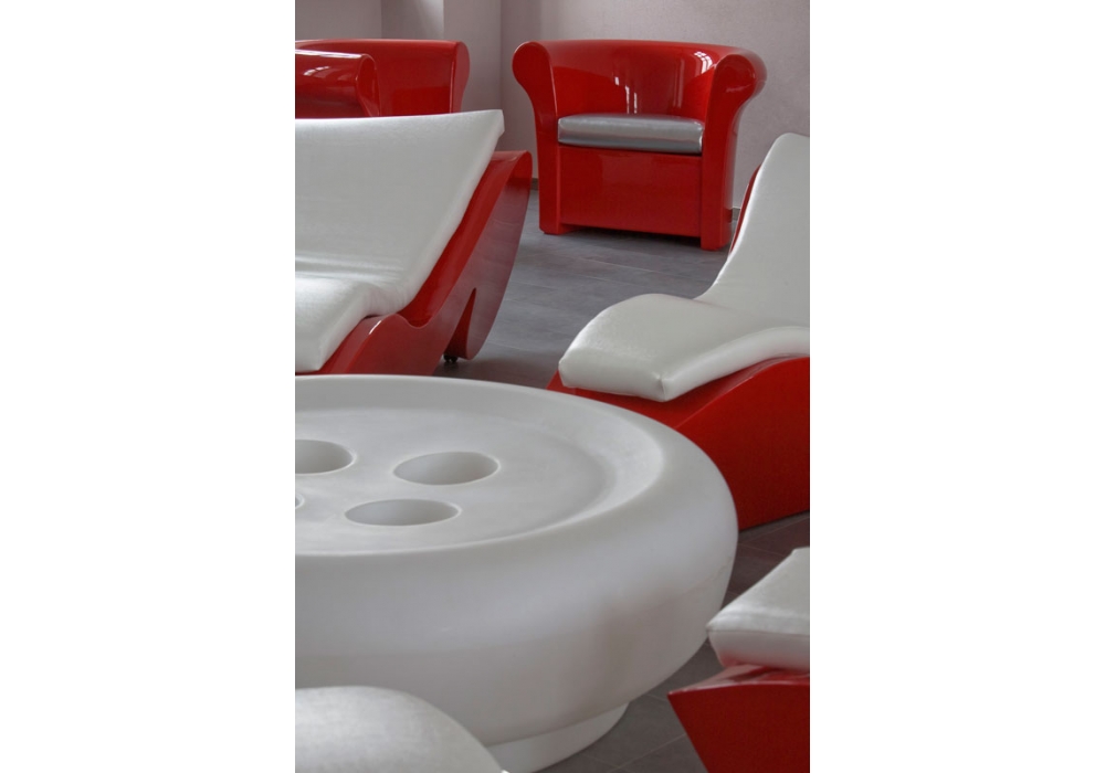 Bot One diseñado por Fabio Della Fiorentina para Slide es un puf realizado en polietileno. Disponible en diferentes acabados y en la versión brillante con acabado blanco brillo