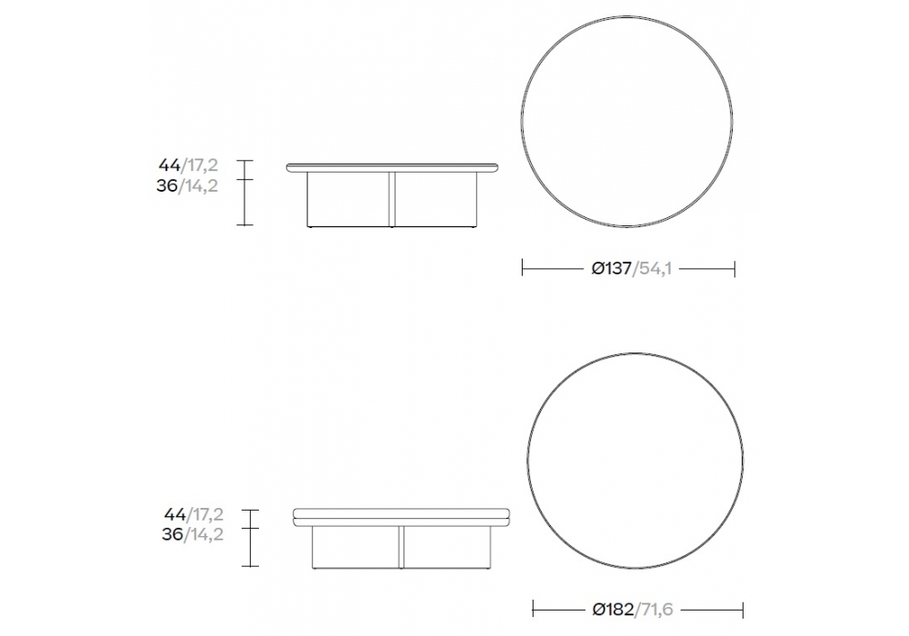 | Dimensiones | Ø 137 x H 44 cm; Ø 182 x H 44 cm. |