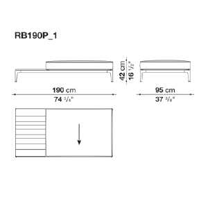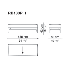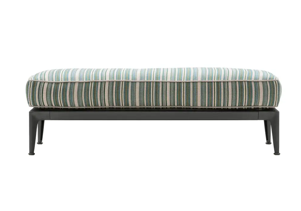 Ribes diseñado por Antonio Citterio para B&B Italia Outdoor es un puf con estructura de aluminio pintado, lamas de asiento de fibra de vidrio de color negro. Revestimiento de tela con perfiles en diferentes acabados. En los casos en que está presente, el inserto plano es de teca natural.