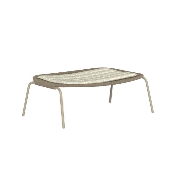 Panamá diseñado por Ludovica y Roberto Palomba para Talenti es un puf con estructura de aluminio y cuerda náutica sintética disponible en varios colores, cojín del asiento en varios acabados.