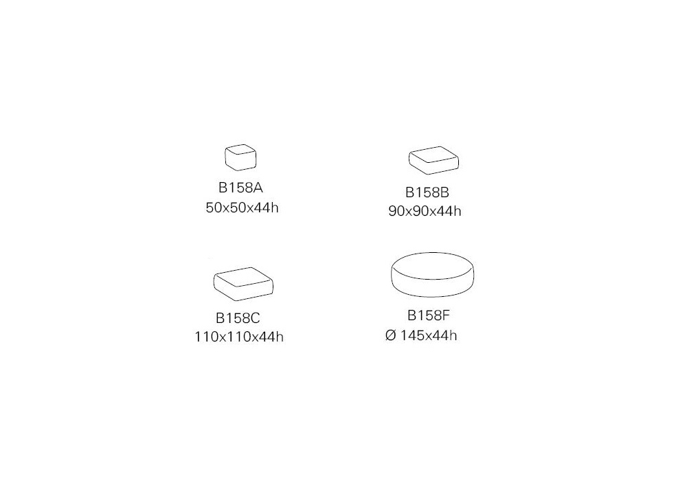 | Dimensiones | 50 x 50 x H 50 cm; 90 x 90 x H 44 cm; 110 x 110 x H 44 cm; Ø 100 x H 44 cm; Ø 145 x H 44 cm. |