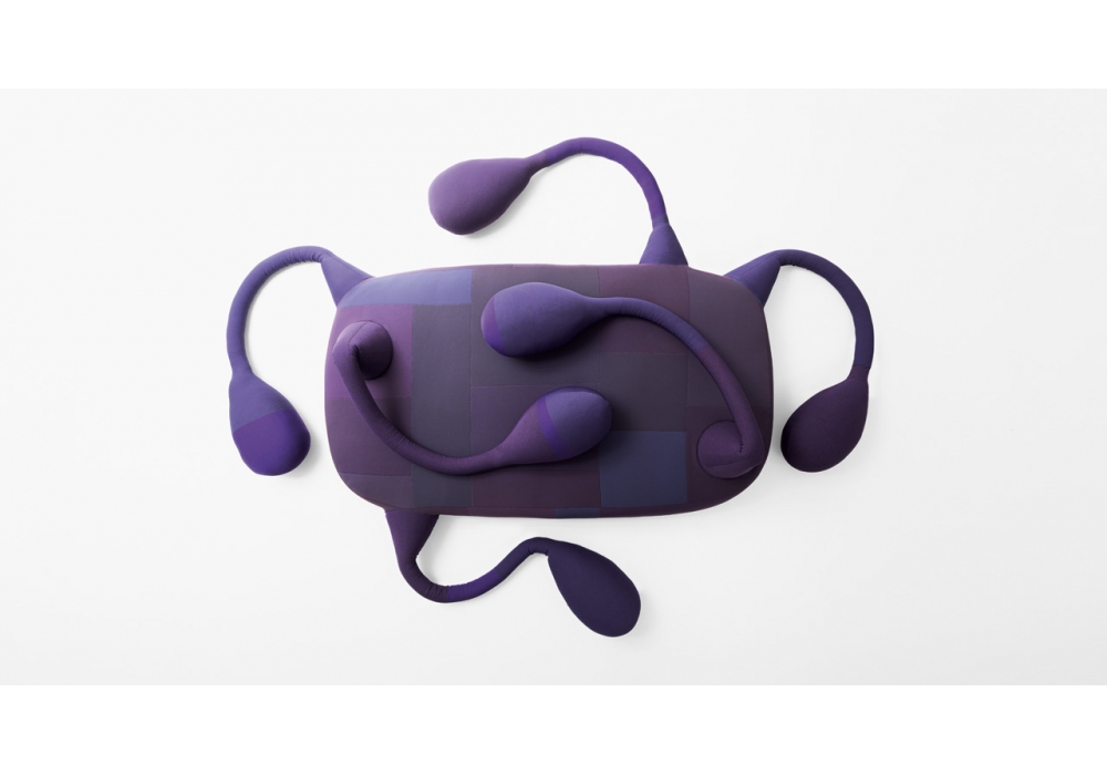 Metamorfosi Zoide diseñado por Campana para Paola Lenti es un asiento con respaldo compuesto por elementos móviles de forma cilíndrica alargada. El acolchado del asiento está fabricado con espuma de polietileno reciclable mezclada con fibra de poliéster azul Aerelle® y una capa de poliéster reciclable, todo ello envuelto en una funda fija de algodón. Los elementos alargados que actúan como respaldo se fijan al asiento pero pueden moverse libremente.