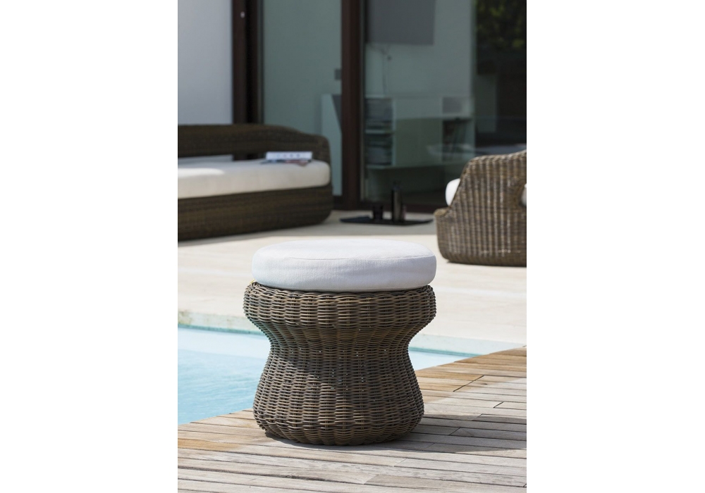 Agorà producido y firmado por Unopiù es un puf circular con estructura de aluminio y carcasa de fibra sintética waprolace tejida a mano. Los cojines están cubiertos de tela acrílica en diferentes colores. Agorà está disponible en diferentes acabados.