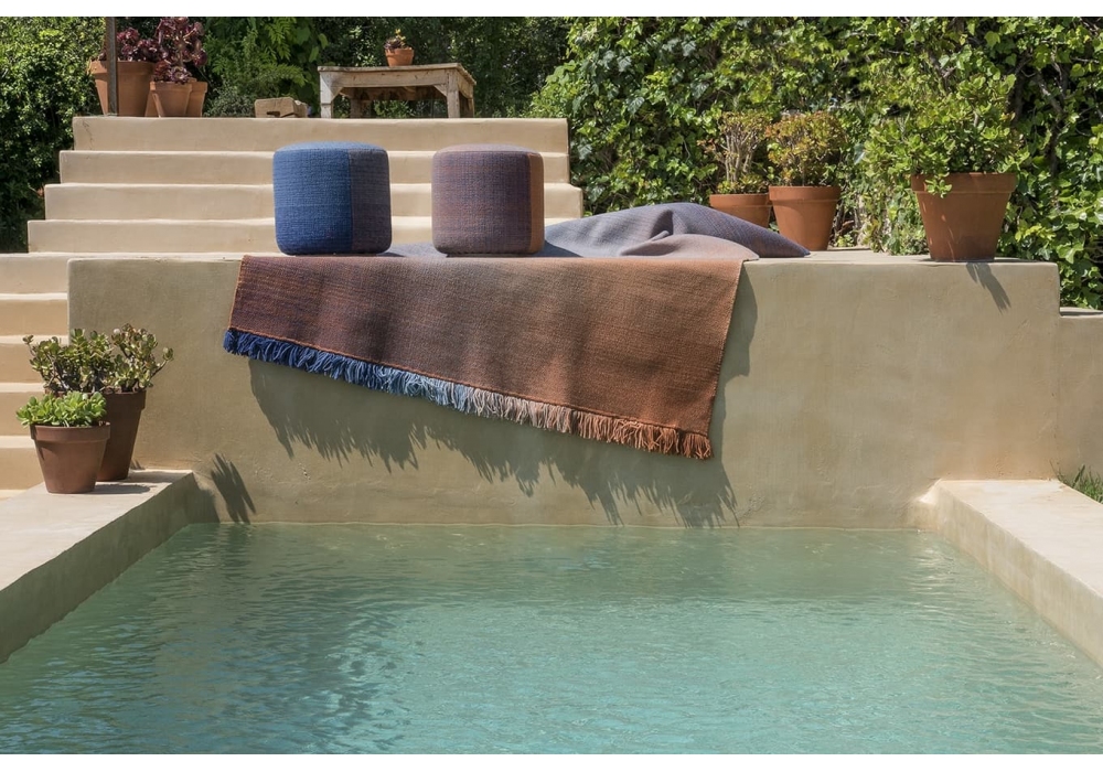 Shade Outdoor diseñado por Begüm Cana Özgür y Marcos Catalán para Nanimarquina es un puf de exterior fabricado con Pet 100% reciclado. Disponible en diferentes modelos.