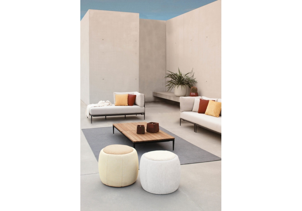 Tono diseñado por Kris Van Puyvelde para Royal Botania es un puf de exterior con estructura en plástico moldeado con tapizado en diferentes acabados. La funda se puede quitar con una cremallera. Disponible en dos tamaños.