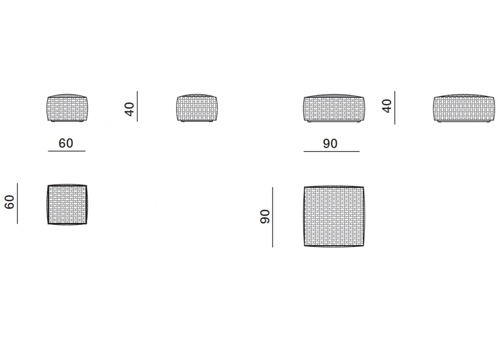 | Dimensiones | 60 x 60 x H 40 cm; 90 x 90 x H 40 cm. |