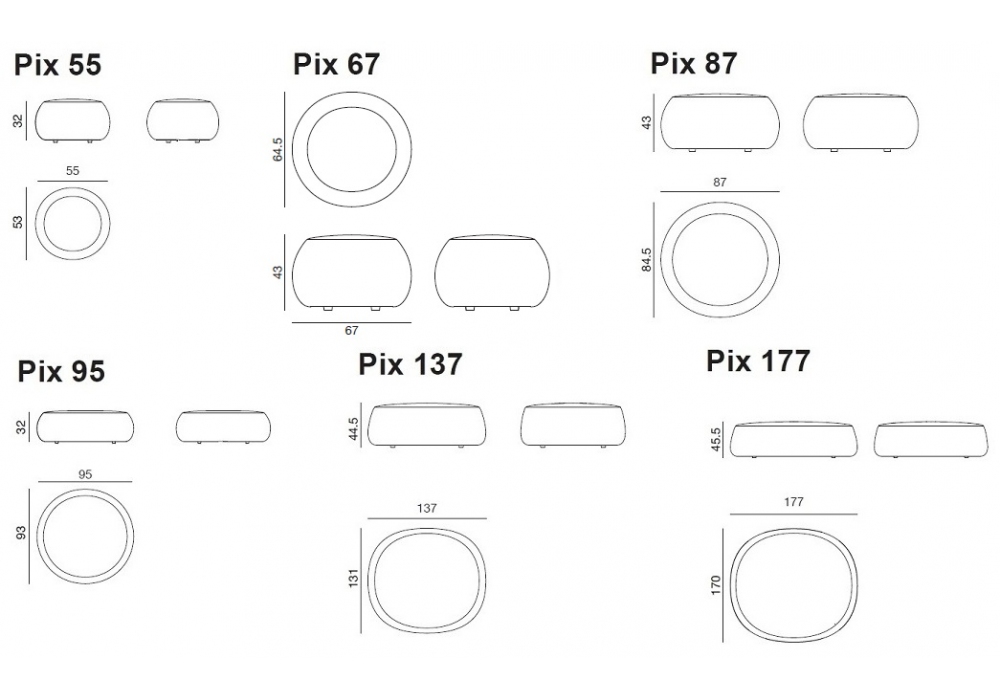 Pix es una serie de pufs diseñada por Ichiro Iwasaki para Arper. Líneas y colores netos y esenciales definen los volúmenes suaves y generosos de Pix: un sistema de pouf invitantes e icónicos que dan un toque casual a ambientes colectivos o domésticos, tanto interiores como exteriores. Pix está disponible en versión de una, tres o cinco plazas, entre una amplia selección de tejidos y colores.