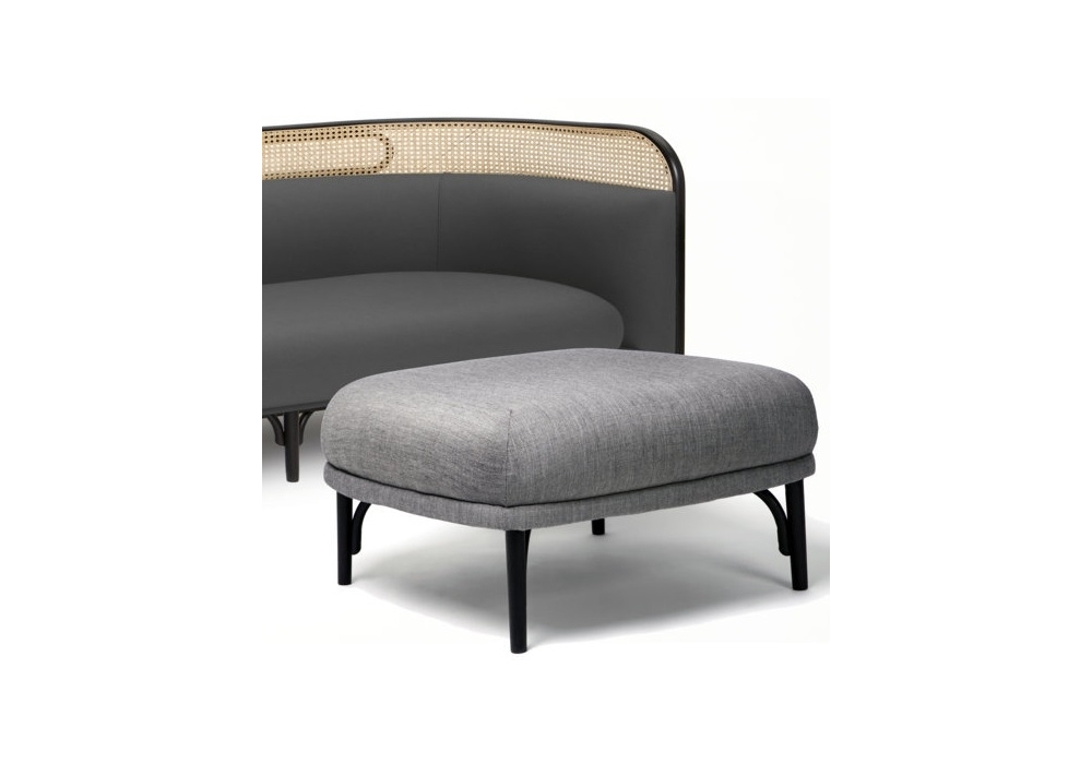 Targa diseñado por Gamfratesi para Gebrüder Thonet Vienna es un puf con estructura en haya curvada, disponible en diferentes acabados. Cojín de asiento grande acolchado con tapizado de tela o cuero. El puf también está disponible con puntas de latón.