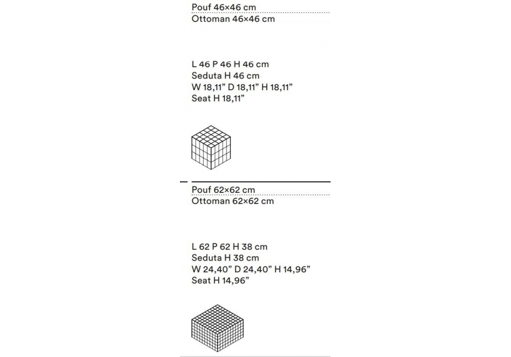 | Dimensiones | 46 x 46 x H 46 cm; 62 x 62 x H 38 cm. |