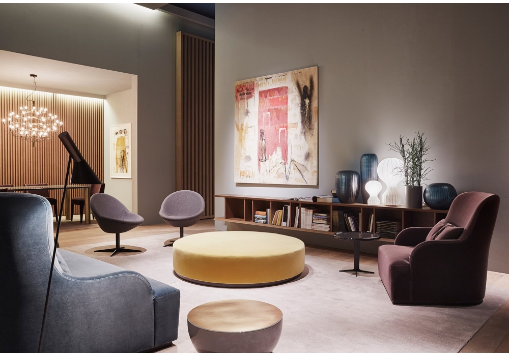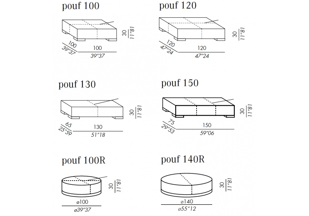 Brons diseñado por Andrea Parisio de Meridiani es una colección de pufs desenfundables y revestimiento fijo para versión en piel. Estructura de madera y patas de madera teñida black, light, almond.