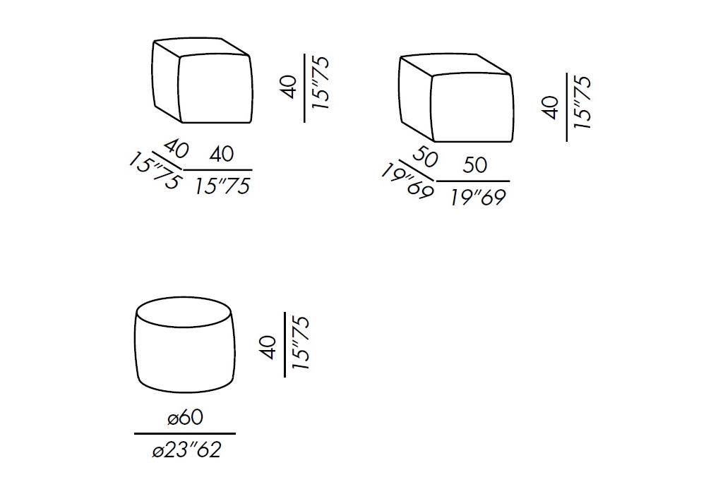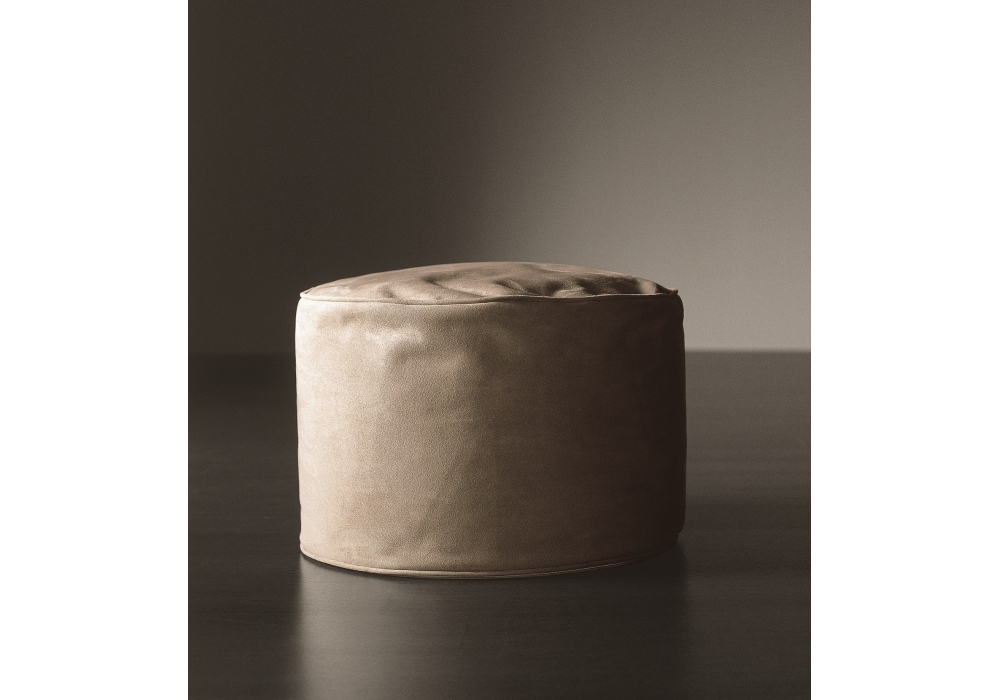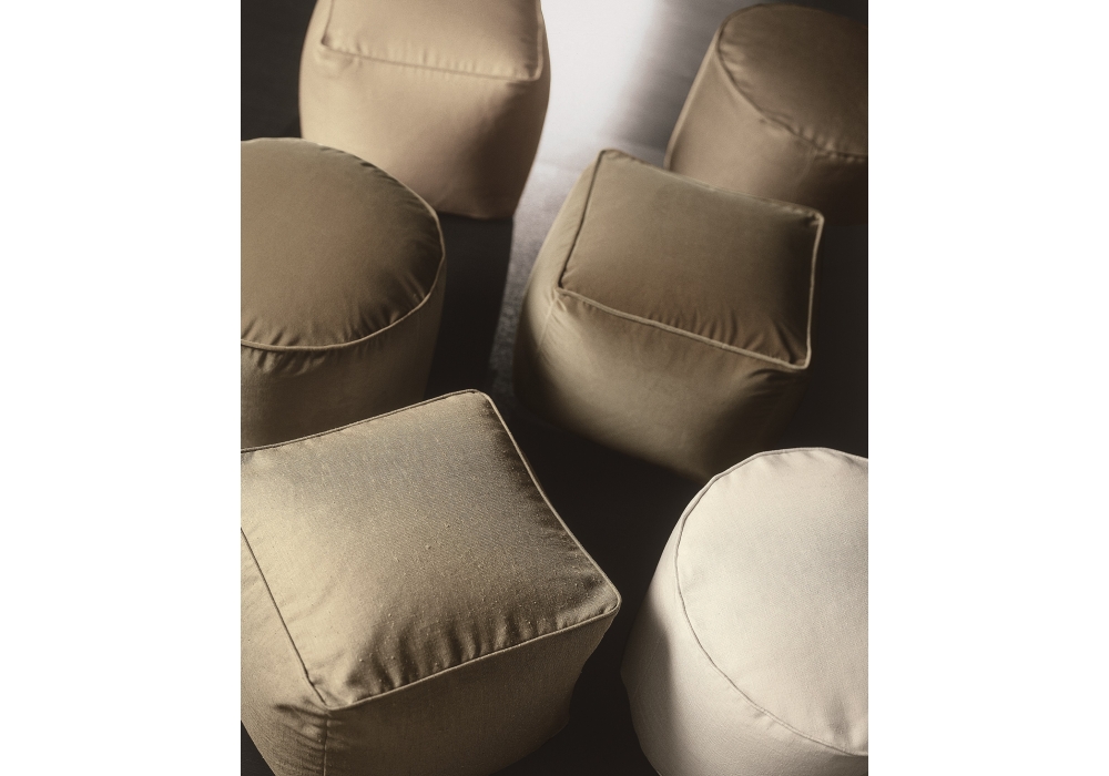 Totò diseñado por Andrea Parisio de Meridiani es una colección de poufs desenfundable con forro interior de piel ovo y relleno de polistireno expandido.