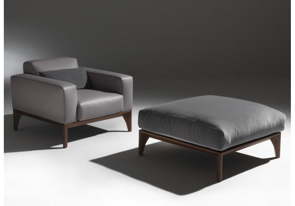 Fellow diseñado por Marconato & Zappa para Porada es un pouf con estructura en nogal canaletta macizo o lacado opaco y revestimiento disponible en diferentes tipos de cuero o tela. Encaja perfectamente con la butaca y el sofá Fellow.