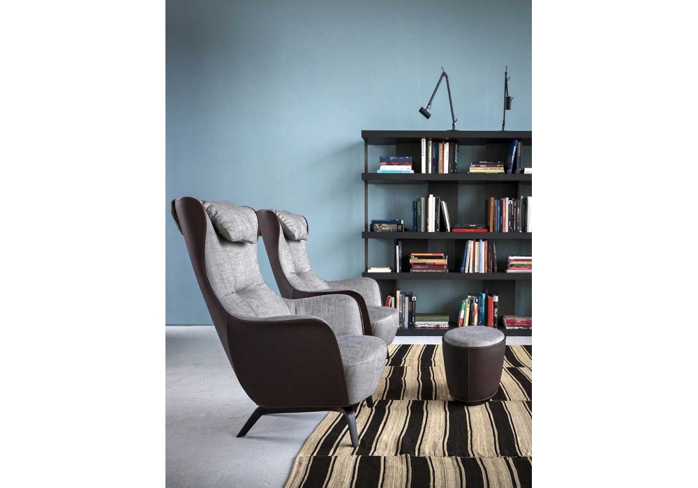 Mamy Blue diseñado por Roberto Lazzeroni para Poltrona Frau es un puf con estructura y asiento revestidos en diferentes acabados.