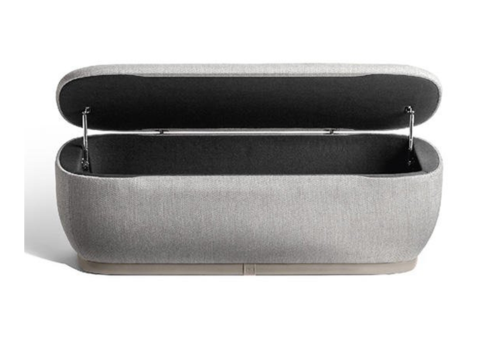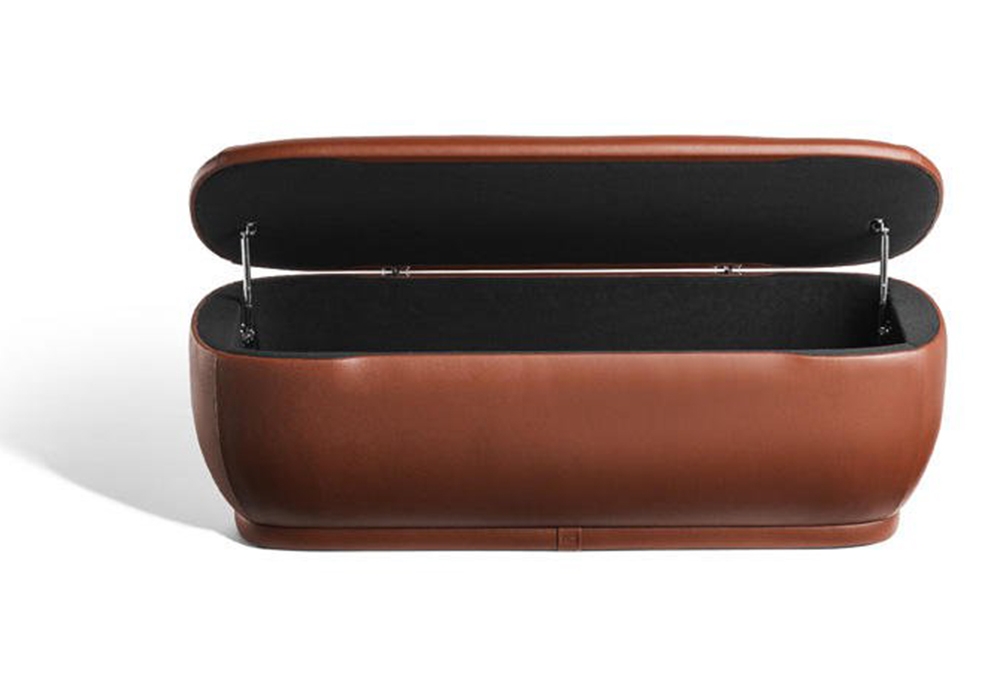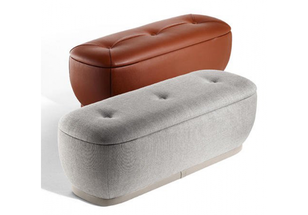 Leplì diseñado por Kensaku Oshiro para Poltrona Frau es un puf con contenedor. Disponible con revestimiento en tela o cuero.
