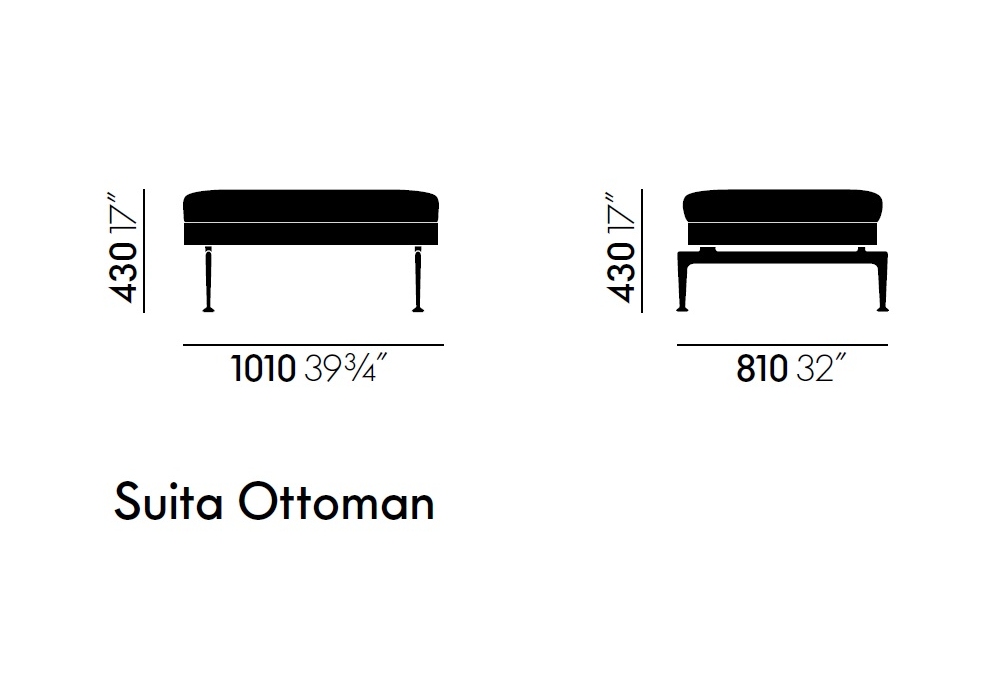 Suita Ottoman Capitonné diseñada por Antonio Citterio para Vitra es un puf, con la base de aluminio fundido a presión con un acabado brillante o con recubrimiento de polvo y la cubierta de tela.