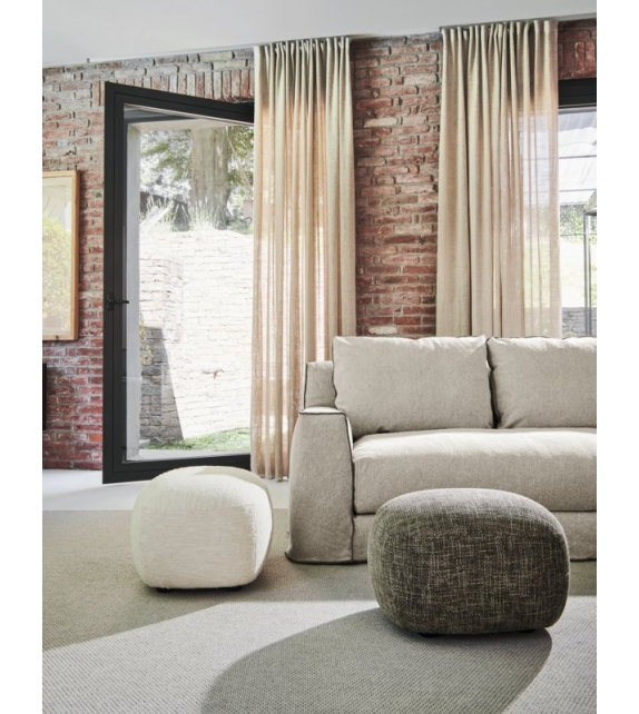 Loll diseñado por Paola Navone para Gervasoni es un puf con relleno de espuma de poliuretano y funda extraíble en diferentes acabados.