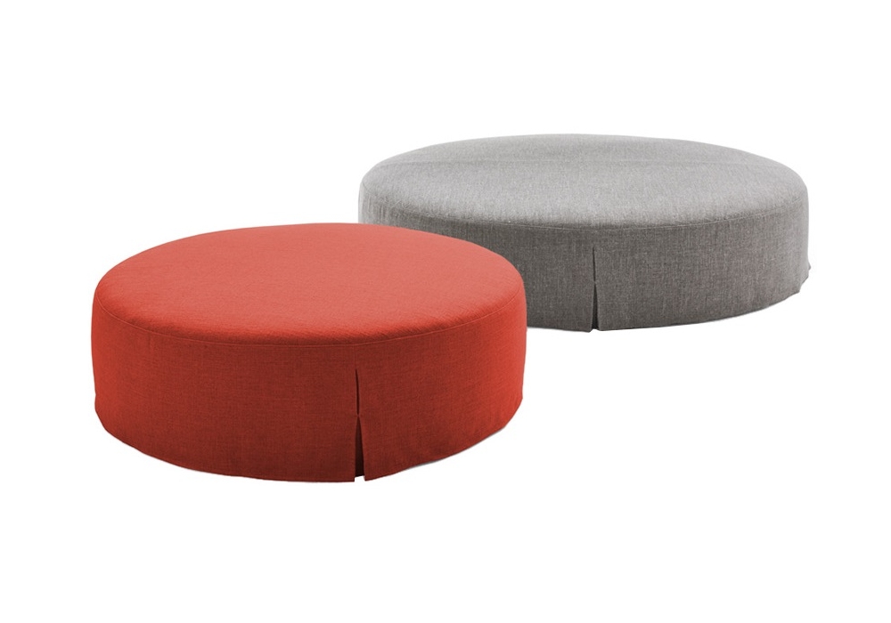 Atoll diseñado por Antonio Citterio para B&B Italia es un puf redondo tapizado disponible en dos dimensiones. Revestimiento en tela o piel.
