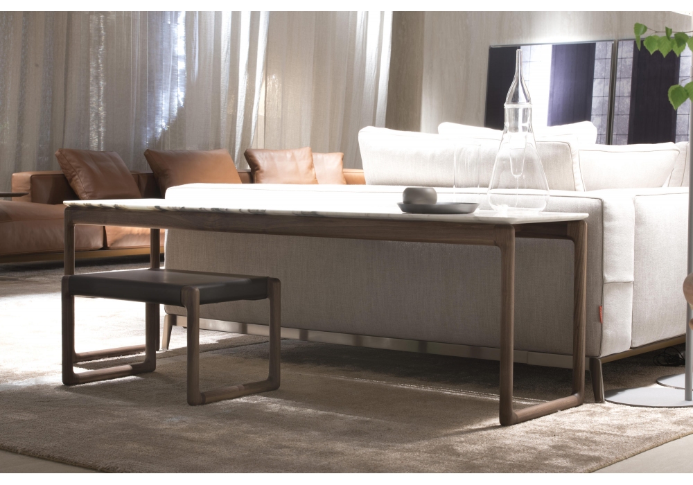 Brig diseñado por Antonio Citterio para Flexform es un puf con estructura de fresno o nogal Canaletto y asiento de cuero.