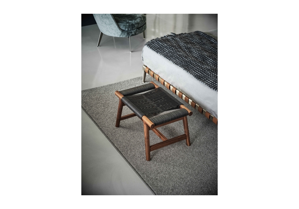 Giano diseñado por Antonio Citterio para Flexform es un puf con estructura en nogal macizo Canaletto o fresno y tapa realizada en cordón de cuero tejido a mano.