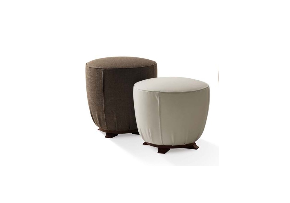 Topaze diseñado por Antonello Mosca para Giorgetti es un puf con estructura de contrachapado de álamo y relleno de espuma de poliuretano. La base es de chapa de madera y los pies de madera maciza, ambos en haya pulida. La funda no desenfundable está disponible en tejido o piel.