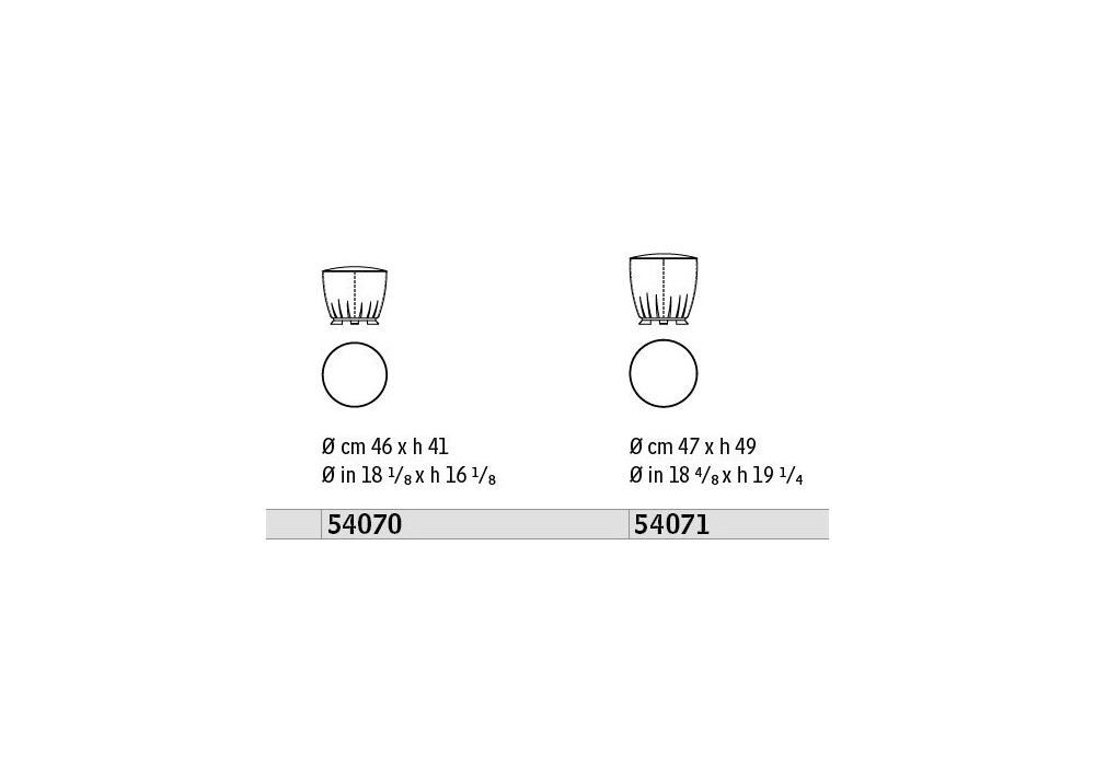 | Dimensiones | Ø 46 x H 41 cm; Ø 47 x H 49 cm. |
