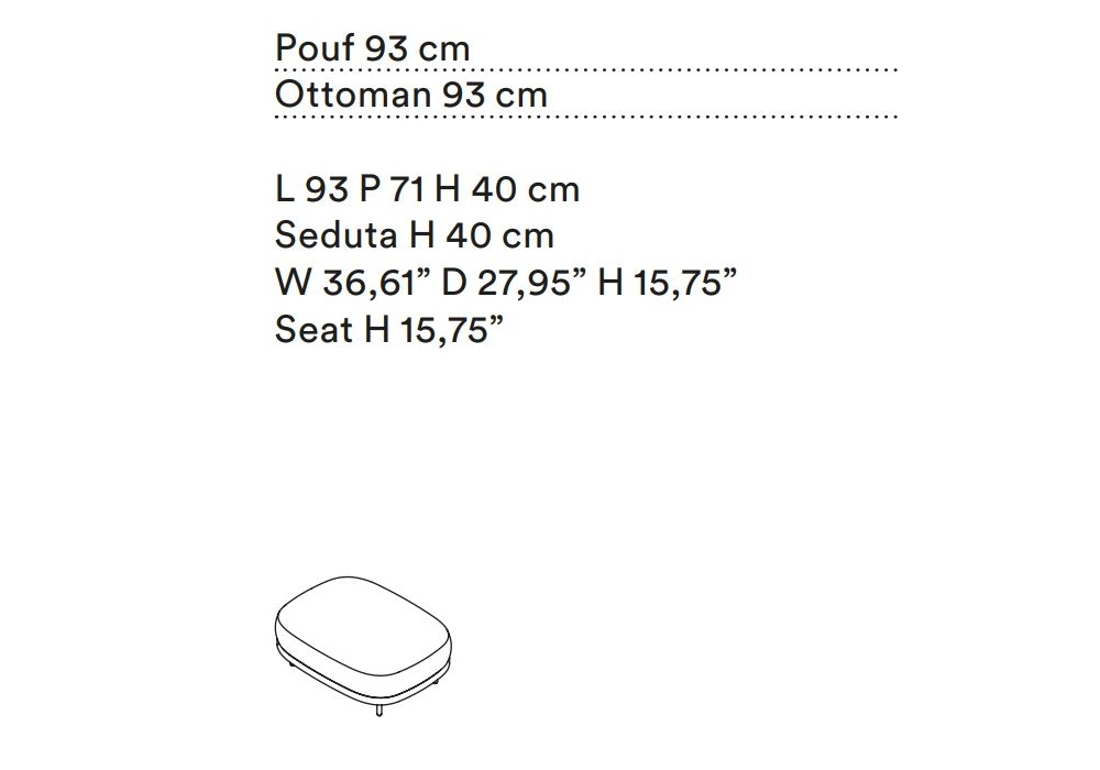 Santiago diseñado por Claesson Koivisto Rune para Tacchini es un puf con patas de metal o madera. Cubierta disponible en diferentes acabados.